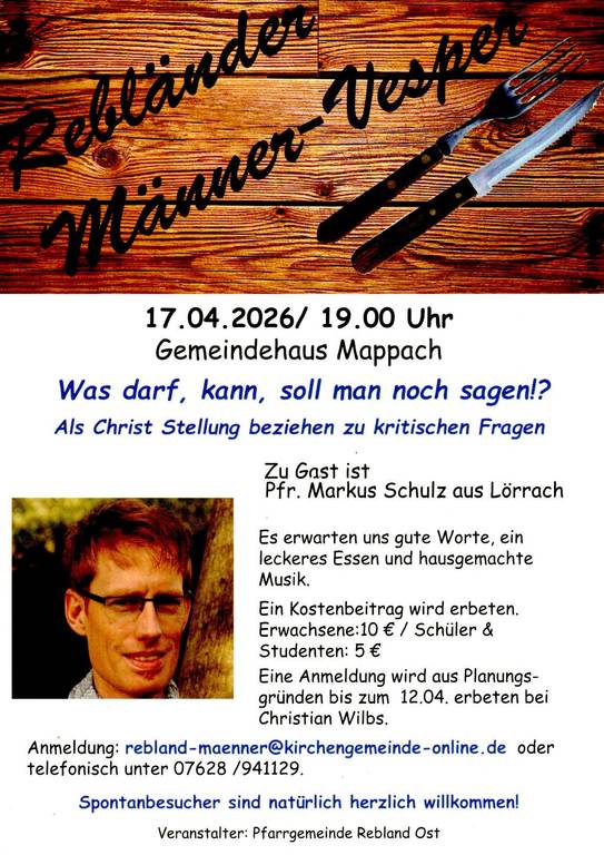 Per E-Mail an rebland-maenner@kirchengemeinde-online.de oder telefonisch unter 07628/941129.