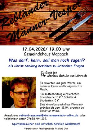 Nach dem Start mit dem Vesper erwarten uns gute Musik und einige gute Worte von unserem Gast, Pfarrer Markus Schulz aus Lörrach.