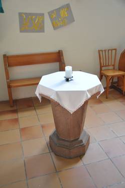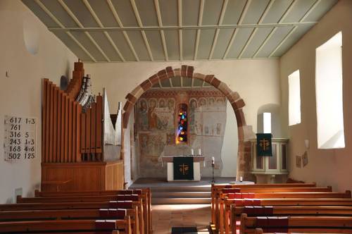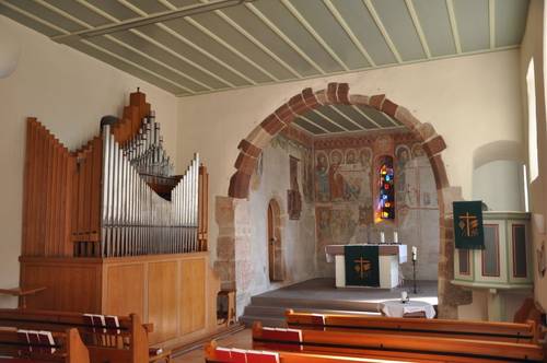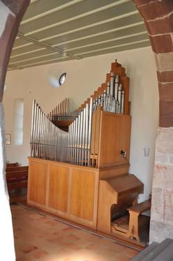 Glockenton: a‘, d‘‘ und f‘‘ Baustile: Hochgotisch Orgel: G. F. Steinmeyer & Co (1966). 2 Manuale, 9 Register Eine detaillierte Beschreibung finden sie hier: